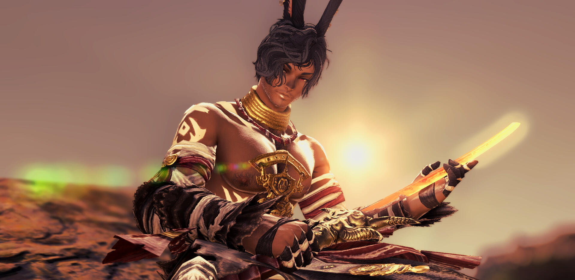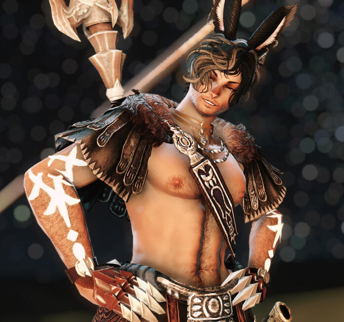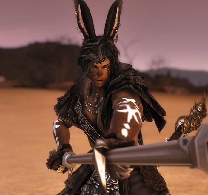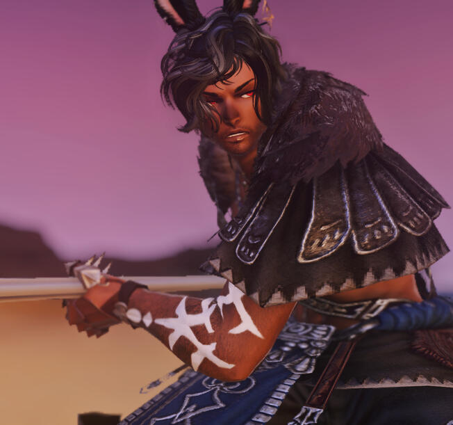 One of the few protectors of a remote village of Viera tucked in the southernmost reaches of Thanalan, born from a truce between the villagers and the Brotherhood of Ash, bound by duty to his people and spurred by curiosity to explore Eorzea while offering his services as a sellsword.