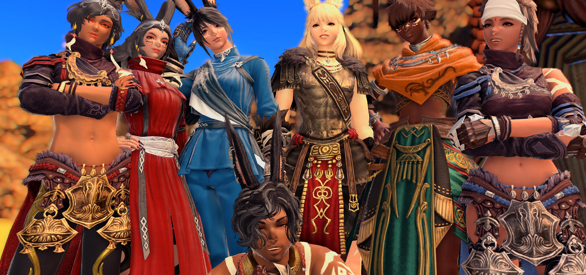 Having left their original home of Dalmasca, a wandering group of nomads known for their strength in textiles and believing themselves ill-suited to battle emigrated to Bozja, lived there for a time, and eventually settled in southern Thanalan.The generations and centuries that have passed have found Hyuran Highlanders, Lupin, and Miqo'te Keepers of the Sun as welcome members of the family, imparting tails, sharper teeth, and larger constitutions than the average Viera.