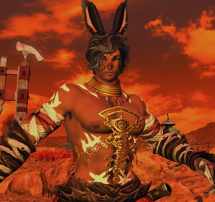 One of the few protectors of a remote village of Viera tucked in the southernmost reaches of Thanalan, born from a truce between the villagers and the Brotherhood of Ash, bound by duty to his people and spurred by curiosity to explore Eorzea while offering his services as a sellsword.